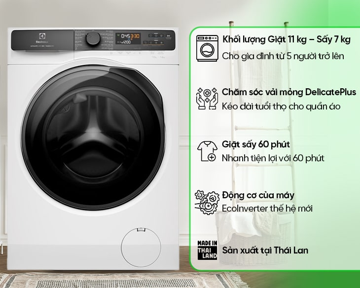 Công nghệ chăm sóc vải mỏng DelicatesPlus giúp kéo dài tuổi thọ cho những bộ quần áo yêu thích của bạn nhờ chuyển động giặt nhẹ nhàng và mực nước tối ưu. DelicatesPlus sẽ chăm sóc nhẹ nhàng cho mọi loại vải mỏng, bao gồm cả vải cotton cao cấp – giúp chúng luôn bền đẹp và giảm hao mòn do giặt theo thời gian.