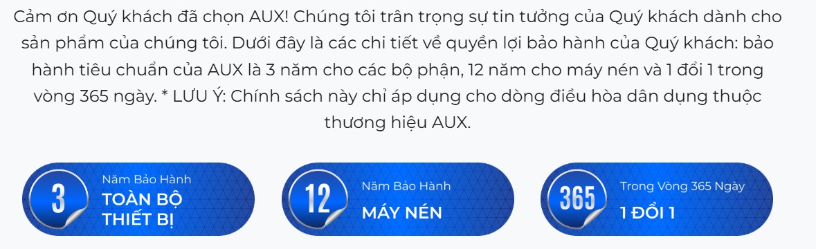 Hiện tại khi quý khách mua máy lạnh treo tường AUX trong năm 2025 sẽ nhận ngay hậu mãi tốt nhất. Xin quy khách liên hệ phòng kinh doanh Siêu thị Máy Lạnh để biết thêm chi tiết, hotline: 0902 820 616 - 0909 811 373