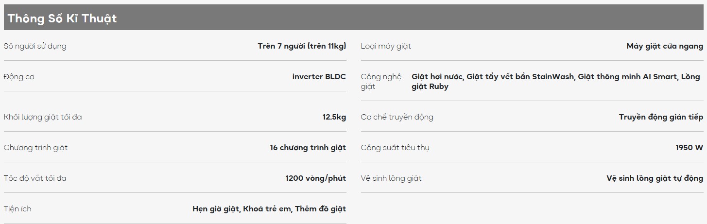 Có 2 Khối lượng giặt. Bạn đang chọn 12.5 Kg