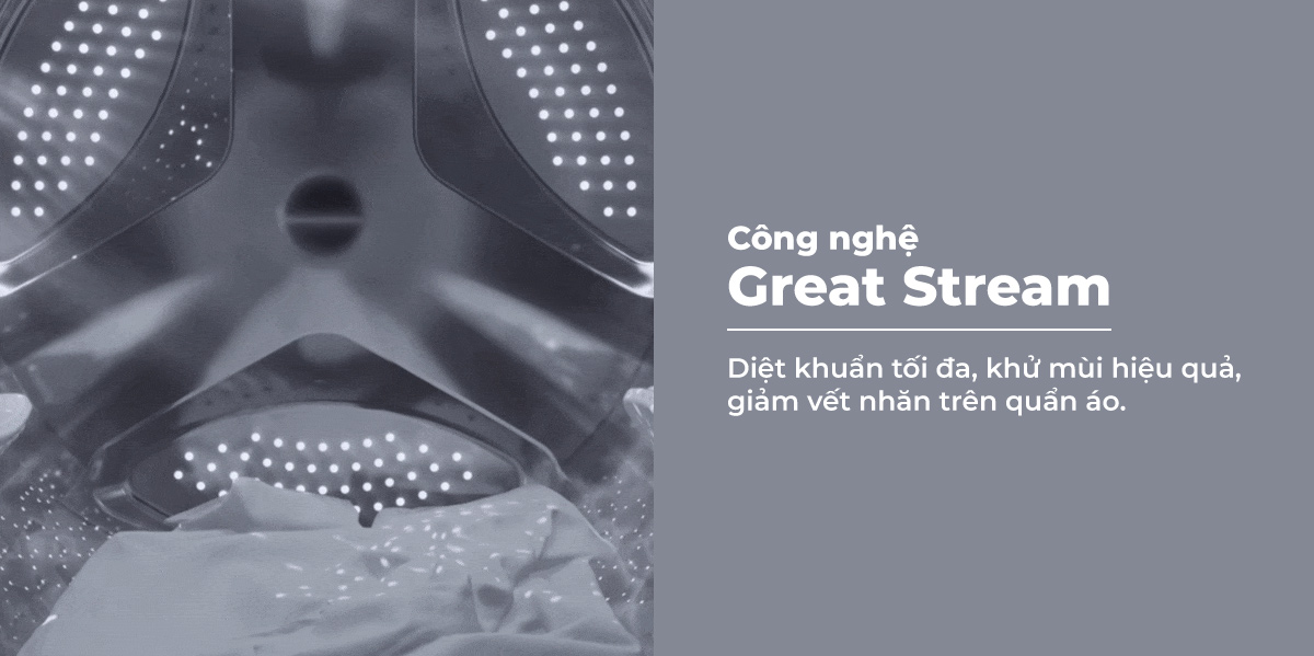 Công nghệ Great Stream diệt khuẩn mạnh mẽ cho áo quần