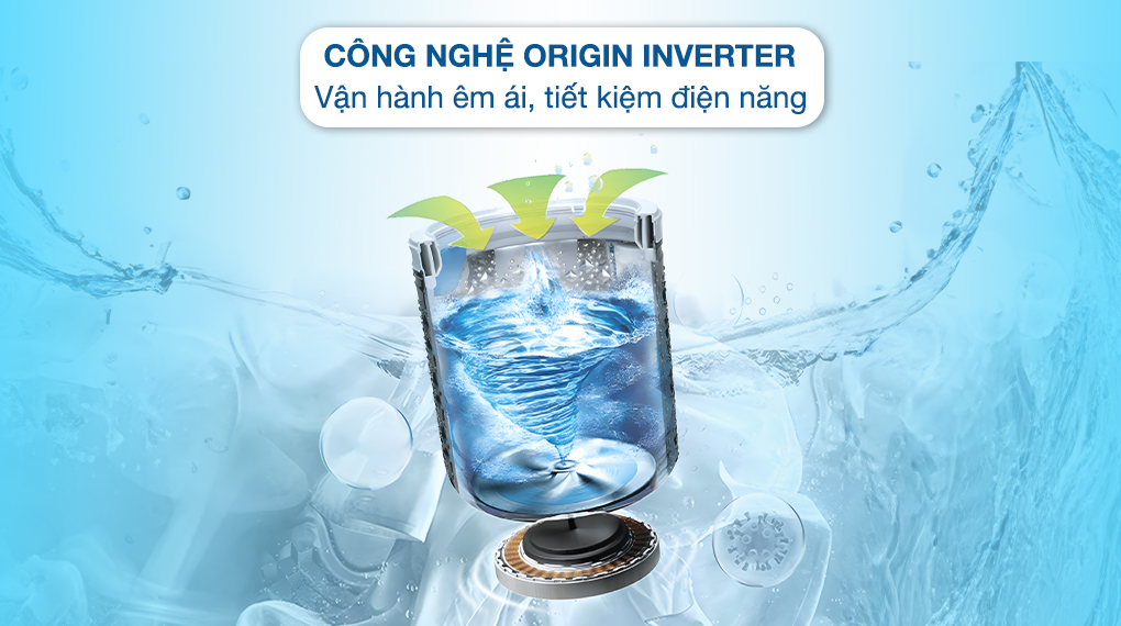 Hoạt động êm ái, bền bỉ, tiết kiệm điện nhờ công nghệ Inverter kết hợp động cơ truyền động trực tiếp