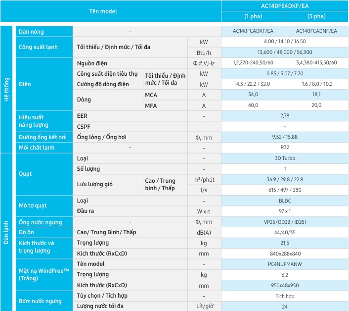 • Máy lạnh Cassette Inverter Samsung 5 Hp WindFree™ 360 AC140FE6DKF/EA-Gas R32