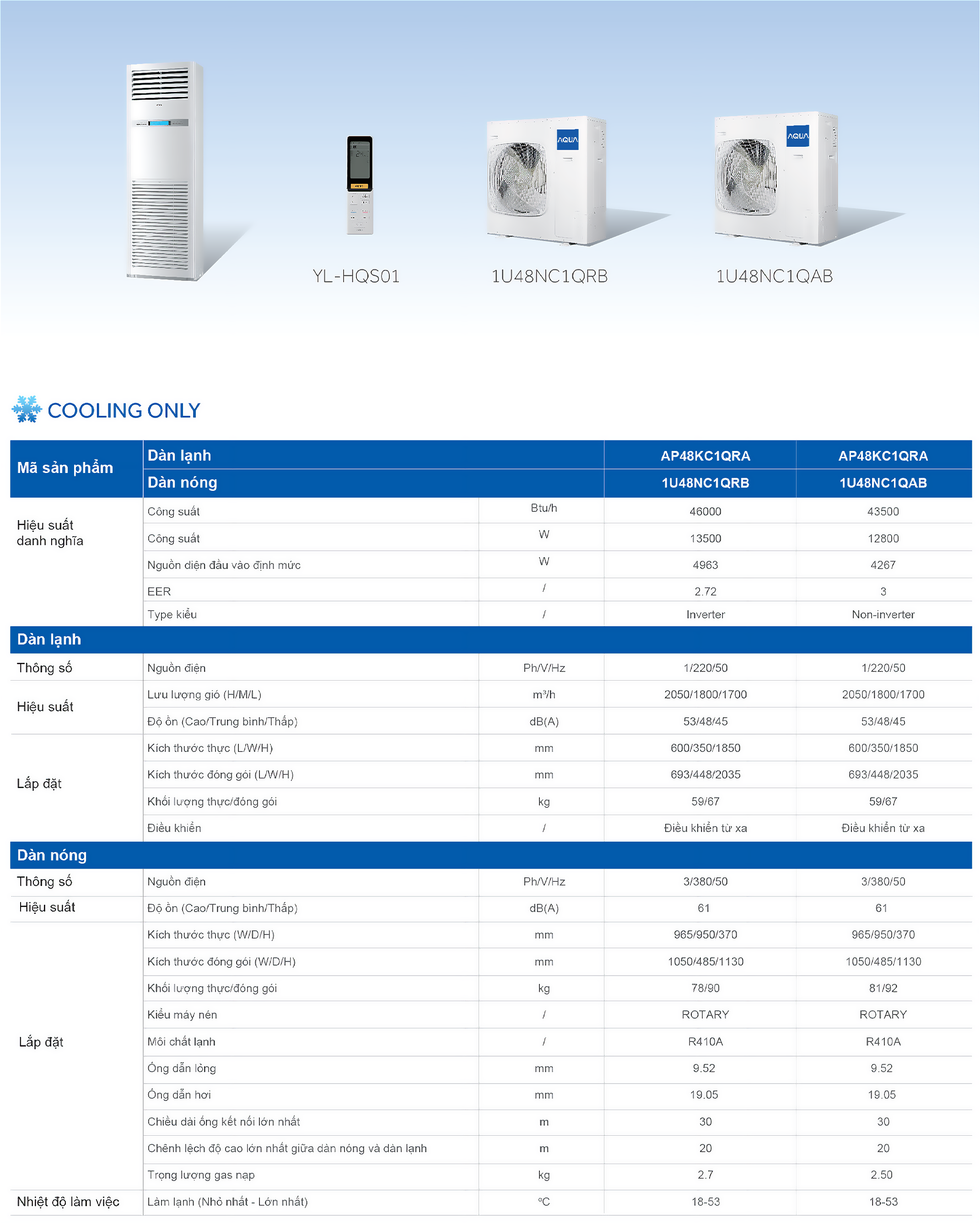• Máy lạnh tủ đứng Aqua 5HP AP48KC1QRA/1U48NC1QAB
