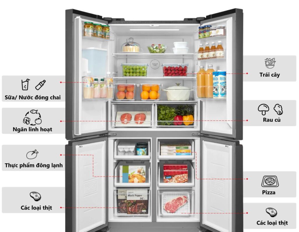 Nội thất thông minh cho phép lưu trữ ngăn nắp tất cả các loại thực phẩm: từ rau củ quả, trái cây đến trứng, thịt, cá đều có không gian riêng biệt.