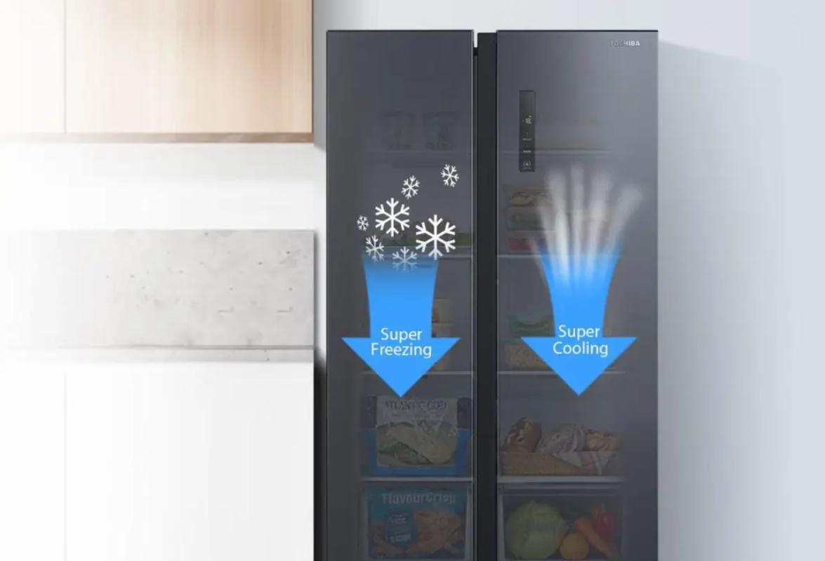 – Ngoài ra, tủ lạnh Toshiba Inverter 555 lít Side By Side GR-RS696WI-PMV(60)-AG còn được trang bị đa dạng tiện ích: làm lạnh nhanh, làm đông nhanh, khay đá di động, khóa bảng điều khiển,… mang lại sự thuận tiện trong quá trình sử dụng.