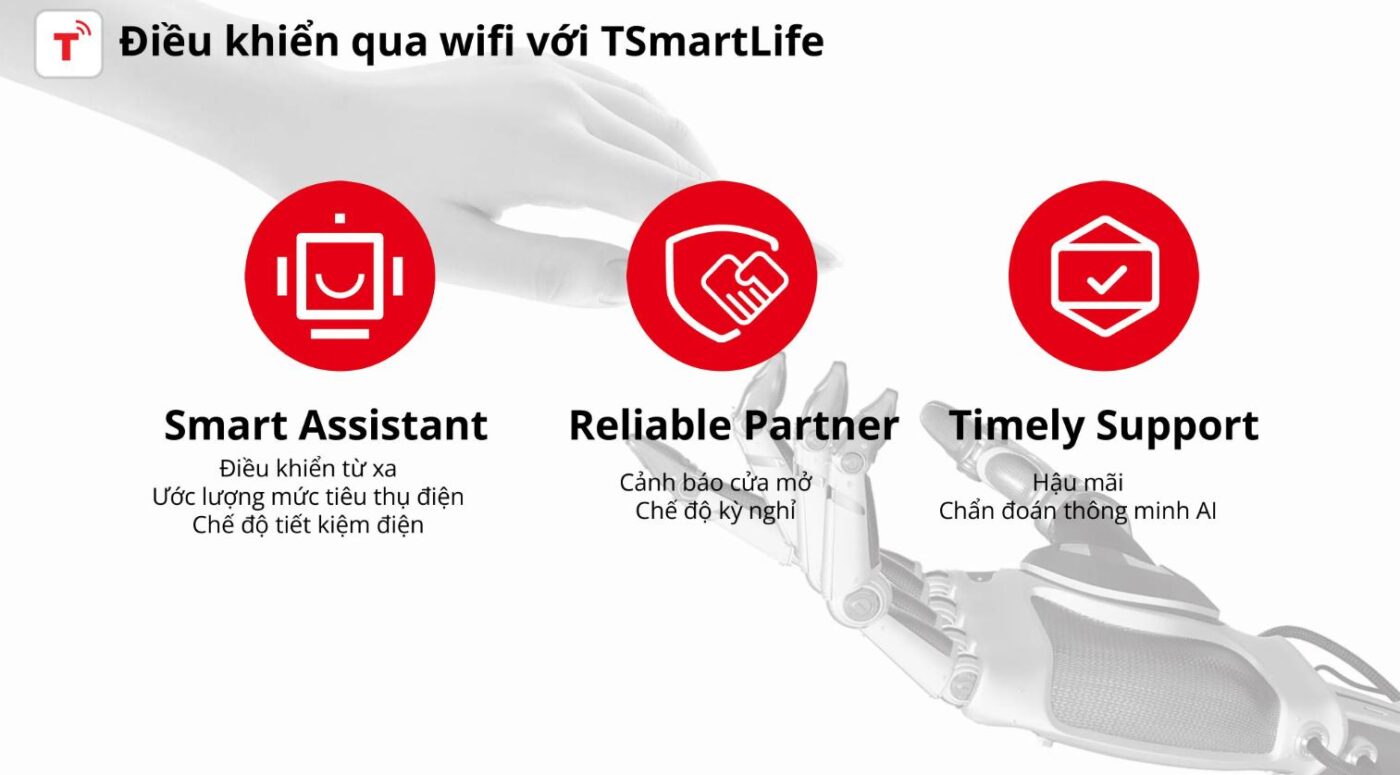 – Tủ lạnh cho phép người dùng theo dõi và điều khiển từ xa thông qua ứng dụng TSmartLife. Điều này không chỉ mang lại sự tiện lợi mà còn giúp người dùng tối ưu hóa hiệu quả sử dụng, kiểm soát điện năng tiêu thụ, khắc phục lỗi nhanh chóng và tiết kiệm năng lượng khi cần thiết.