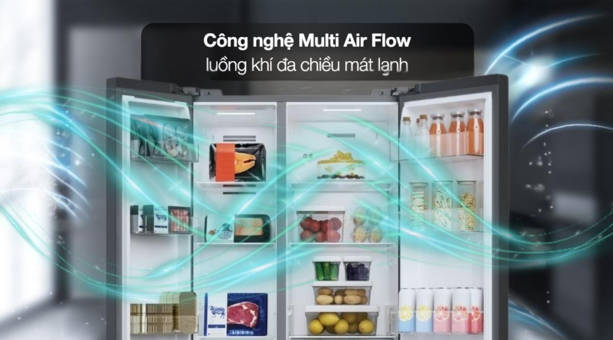 – Kết hợp luồng khí lạnh đa chiều Multi Air Flow với Surrounding Cooling, giúp khí lạnh lan tỏa đều khắp ngăn, giữ nhiệt độ ổn định ở mọi vị trí.