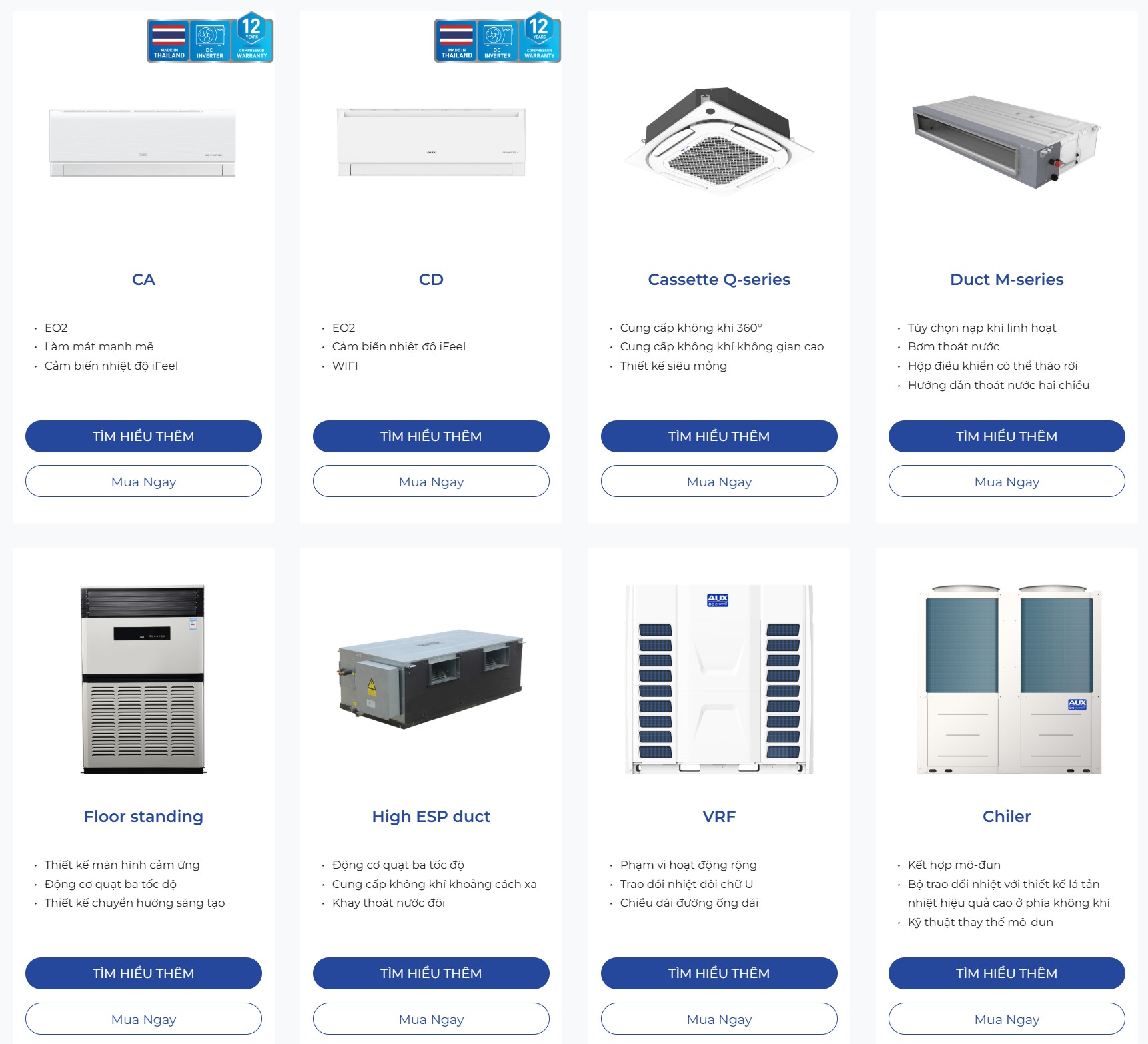 Với quy mô một tập đoàn lớn AUX group sở hữu 7 trung tâm nghiên cứu. 15 nhà máy, bán hàng tại hơn 150 quốc gia, khu vực, với hơn 40 ngàn lao động. Riêng mảng điện lạnh Aux cung cấp dãy sản phẩm bao trùm nhiều phân khúc từ gia dụng đến thương mại, công nghiệp.