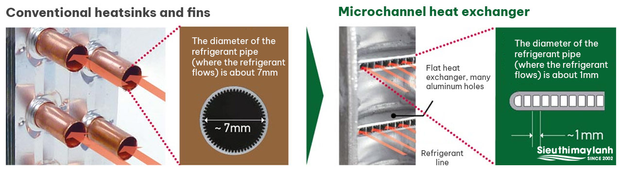 With a larger heat exchanger area and higher airflow volume compared to conventional oness, the Microchannel heat exchanger helps higher heat exchange efficiency. In addition, the durability of the radiator is also proved when it passes the 2,000 hour salt spray test without leaking due to corrosion. (*)
