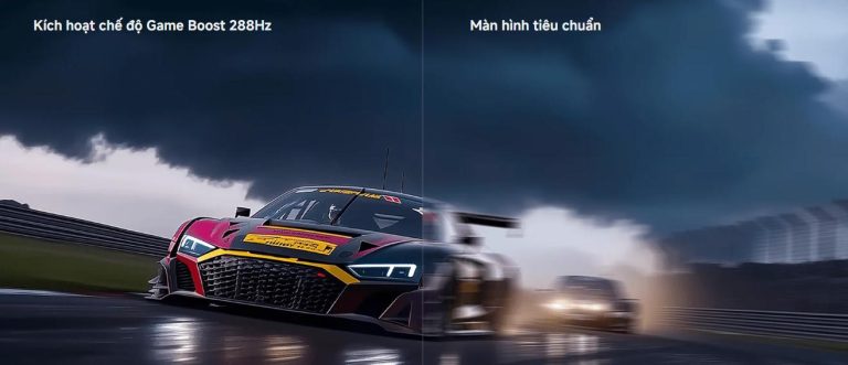 Chế độ Game Boost 288Hz: loại bỏ bóng mờ, hiển thị mượt mà khi chơi game tốc độ cao.