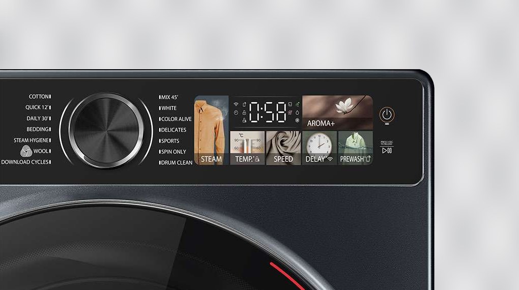 – Bảng điều khiển song ngữ Anh – Việt cảm ứng màu kèm nút xoay nhạy bén, màn hình LED sắc nét với hình ảnh minh họa rõ ràng, có chữ và số hiển thị to rõ cho thao tác điều khiển thiết bị nhẹ nhàng và thân thiện hơn.