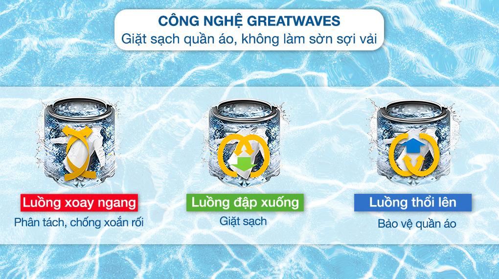 Đánh bay những vết bẩn cứng đầu nhờ công nghệ Greatwaves kết hợp 3 luồng nước