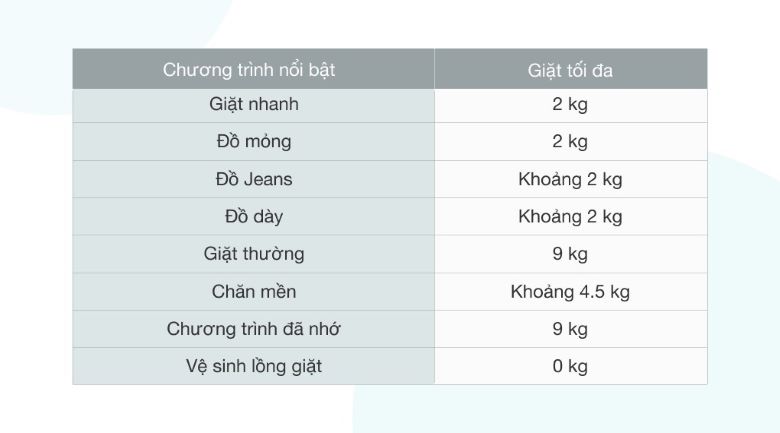 Có 1 Khối lượng giặt. Bạn đang chọn 9.0 Kg