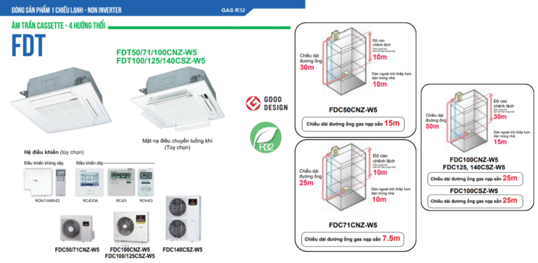 • Máy lạnh âm trần Cassette Mitsubishi Heavy FDT50CNZ-W5 4 hướng thổi 1 pha RCN-T-5BW-E2