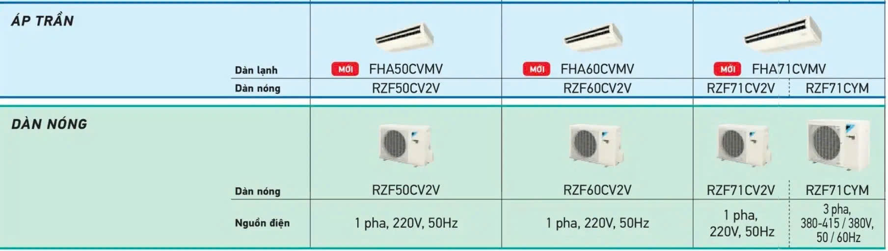 Máy lạnh áp trần Daikin Inverter 1Pha FHA50CVMV/RZF50CV2V+BRC1E63