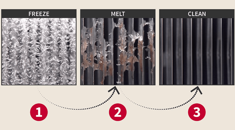Ban đầu, công nghệ vệ sinh tự động này sẽ đóng băng dàn trao đổi nhiệt ở mức -15 độ C để thu gom các chất bẩn, chất gây ô nhiễm, sau đó làm tan chảy để rửa trôi, làm sạch dàn lạnh. Khi đó, luồng khí mát thổi ra từ dàn lạnh sẽ luôn trong lành, rất hữu ích cho người lớn tuổi, trẻ nhỏ hay người bị bệnh về đường hô hấp.