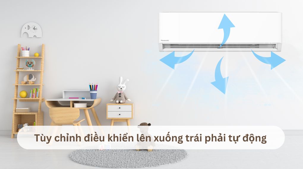 - Máy lạnh có cơ chế gió lên xuống trái phải tự động, giúp hơi lan tỏa đều khắp không gian, tạo cảm giác dễ chịu và thoải mái. Bên cạnh đó, thiết kế cánh đảo gió 4 chiều còn giúp hạn chế luồng gió thổi trực tiếp vào người, giảm nguy cơ mắc các bệnh về đường hô hấp như ho, sổ mũi, đặc biệt phù hợp với gia đình có trẻ nhỏ và người lớn tuổi.