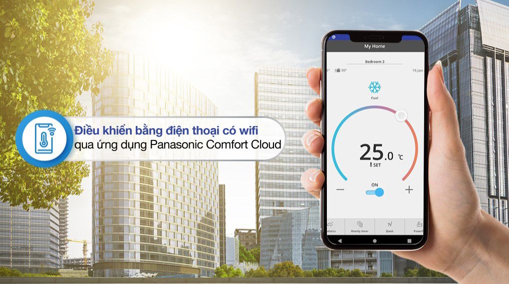 - Điều khiển từ xa bằng điện thoại: bạn có thể tùy chỉnh nhiệt độ, các chức năng của máy bằng điện thoại một cách dễ dàng thông qua ứng dụng Panasonic Comfort Cloud.