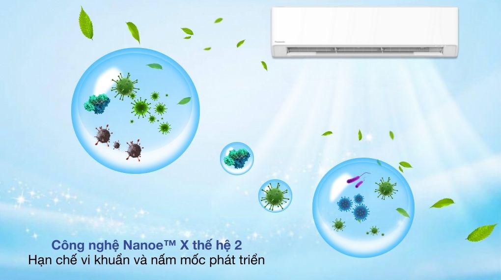 - Công nghệ lọc không khí Nanoe™ X thế hệ 2 loại bỏ hiệu quả các mùi hôi khó chịu như mùi thuốc lá, thức ăn, ẩm mốc,... Công nghệ này không chỉ khử mùi mà còn hạn chế sự phát triển của vi khuẩn và nấm mốc gây hại.
