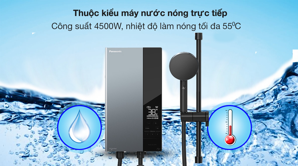 – Công suất làm nóng 4500W, có thể làm nóng nước với nhiệt độ tối đa khoảng 55°C.