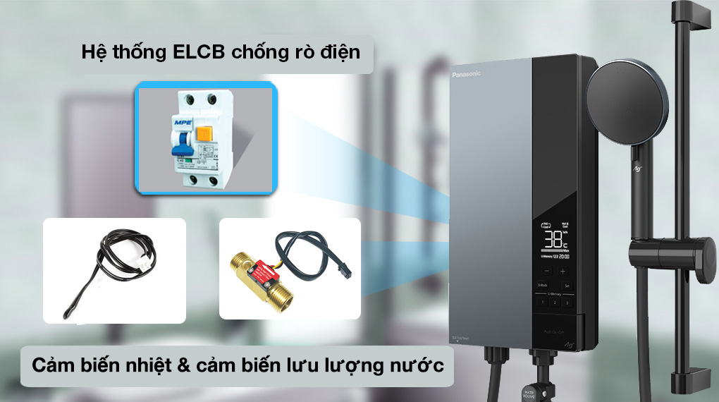 – Hệ thống ELCB chống giật: Có khả năng tự động ngắt điện khi xuất hiện tình trạng rò rỉ điện hoặc dòng điện vượt quá mức ngưỡng cho phép của máy nước nóng Panasonic được thiết lập.