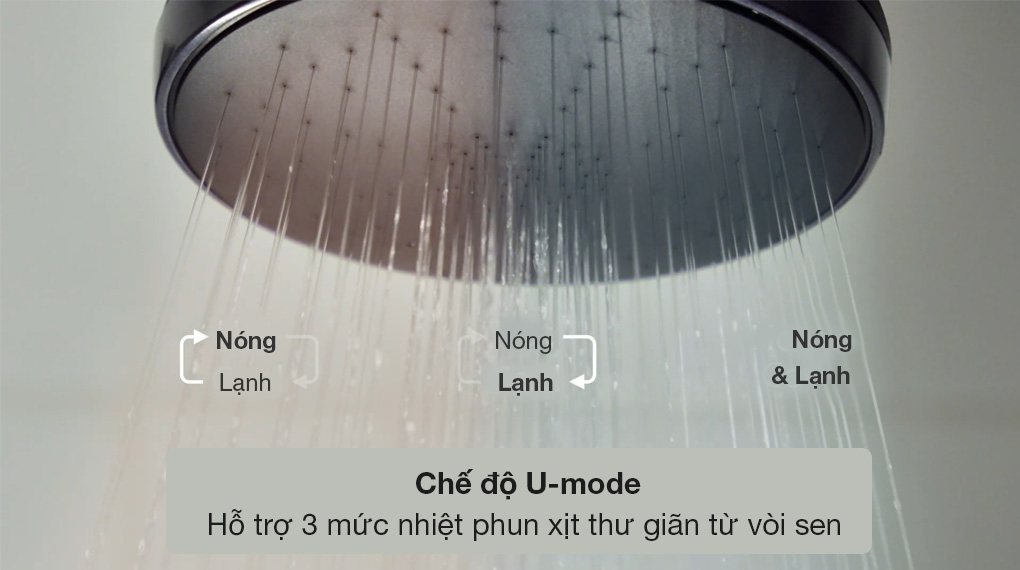 – Chế độ U-mode: Hỗ trợ chọn các mức nhiệt thư giãn từ chế độ phun xịt từ vòi sen khi sử dụng.