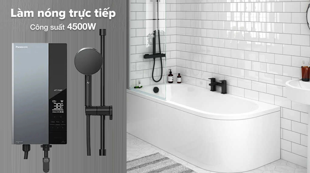 Máy nước nóng trực tiếp Panasonic 4500W DH-4UDP1VZ hiện đại, đẹp mắt, khả năng làm nóng nhanh với công suất lớn 4500W, làm nóng trực tiếp an toàn nhờ vỏ máy chống thấm, cầu dao ELCB, cảm biến tự động ngắt,… Sản phẩm tiện dụng cho gia đình, thiết kế vòi sen 3 chế độ phun, khử trùng nước bằng ion bạc bảo vệ tốt hơn cho sức khỏe.