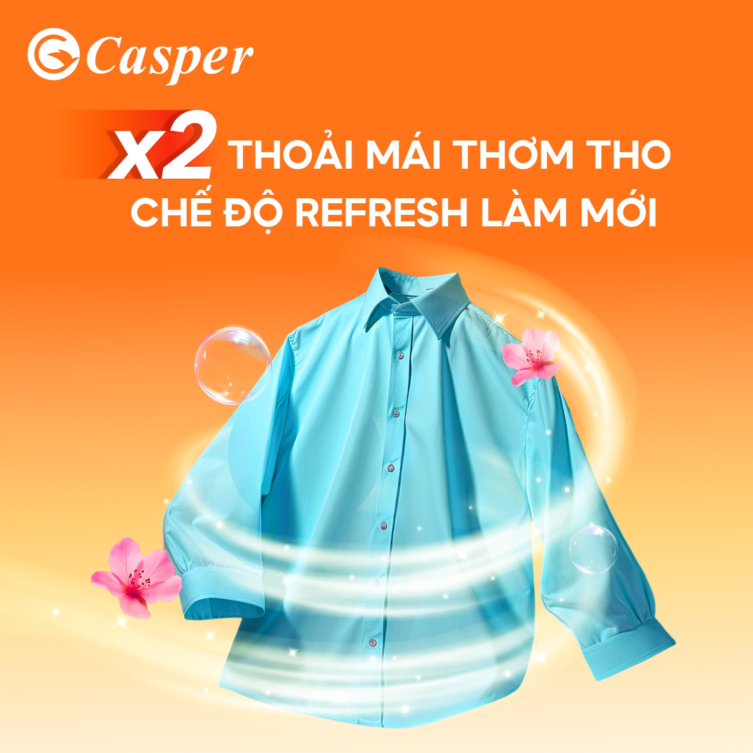 Máy sấy bơm nhiệt Casper X2 Thoải mái thơm tho cùng Chế độ ReFresh làm mới quần áo với công nghệ sấy bằng gió nóng, hỗ trợ loại bỏ nhanh mùi hôi khó chịu.