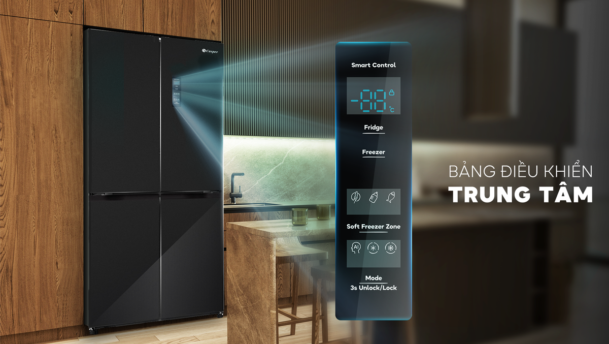 Màn hình LED Smart Control giúp bạn dễ dàng điều chỉnh nhiệt độ tiện lợi và kích hoạt các tính năng của tủ lạnh mà không cần mở cửa tủ.