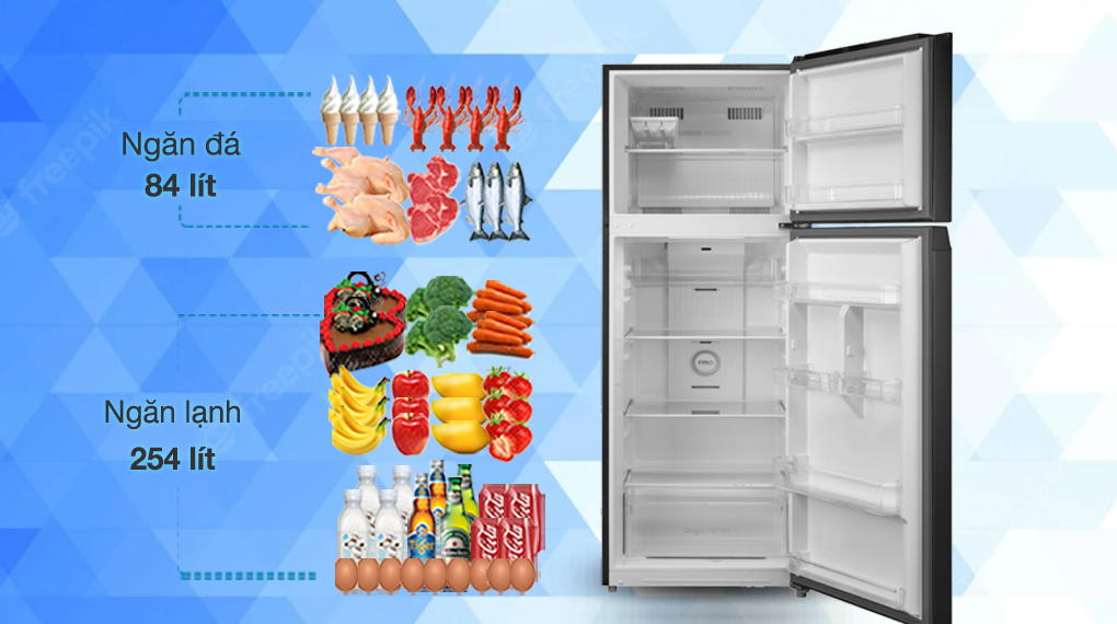 – Dung tích sử dụng 338 lít, mẫu tủ lạnh Toshiba này đáp ứng tốt nhu cầu bảo quản thực phẩm cho các gia đình từ 3 – 4 người.