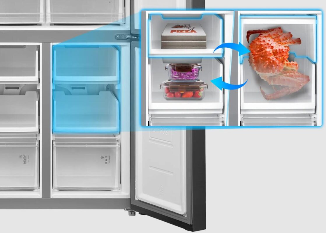 Nội thất thông minh cho phép lưu trữ ngăn nắp tất cả các loại thực phẩm: từ rau củ quả, trái cây đến trứng, thịt, cá đều có không gian riêng biệt.